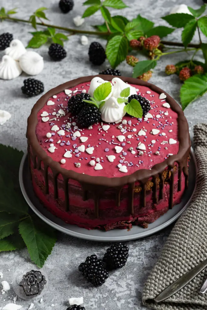 Leckere herbstliche Torte mit Brombeercreme und Schokolade.
