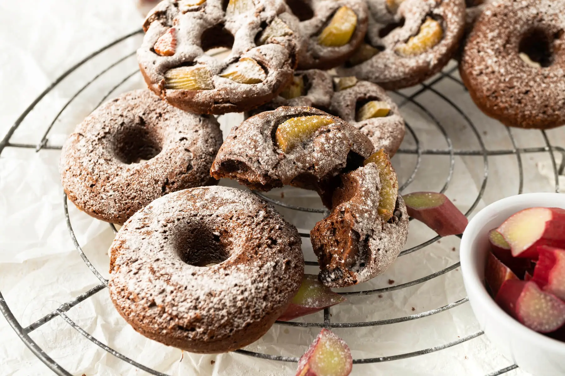 Brownie Donuts mit Rhabarber