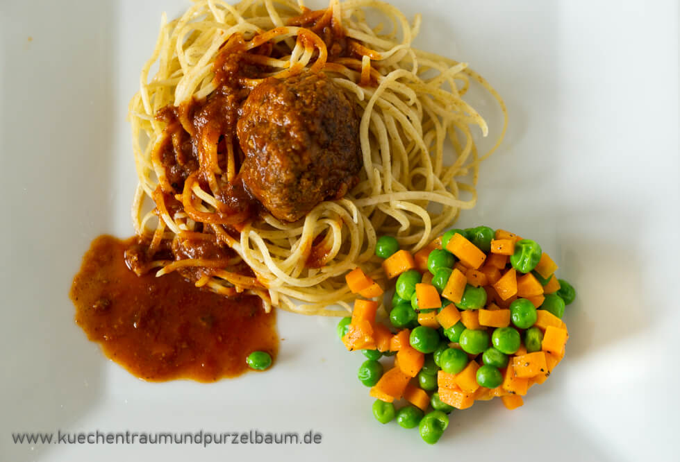 - Öl in einer Pfanne erhitzen und die Hackfleischbällchen darin ausbacken.Währenddessen die Nudeln garen. Wenn ihr die Nudeln selbst machen wollt, könnt ihr das Nudelteigrezept von den Maultaschen nehmen und halbieren.