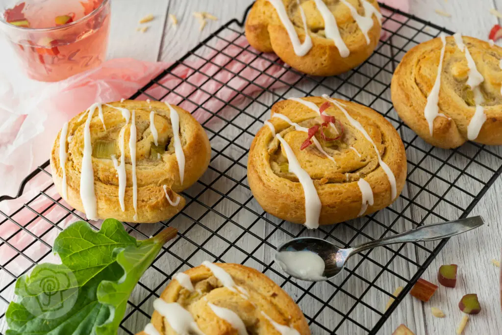 Rhabarber Schnecken mit Streuseln und Erdbeeren